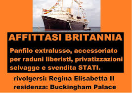 Nel 1992 vi fu un importante raduno nel panfilo Britannia dove fu deciso il destino del mondo occidentale ed in particolar modo dell'Italia, che fu traghettata verso la globalizzazione ed il neoliberismo sfrenato, la cui opera fu iniziata dagli oramai defunti Ronald Reagan e Margaret Tatcher negli anni '80 e le cui conseguenze paghiamo tutt'oggi (privatizzazione selvaggia, perdita sovranità nazionale, fine delle politiche sociali e del posto di lavoro fisso). Per distruggere la vecchia classe politica italiana (troppo legata al vecchio mondo bipolarista creato dalla guerra fredda, troppo statalista e poco disposta al neoliberismo), si usò l'arma di tangentopoli, mentre oggi l'arma del risentimento verso l'intero sistema partitico che viene tenuto sotto ricatto per accettare le direttive restrittive della UE e per far accettare all'Italia le misure d'austerità, così da togliergli gli ultimi scampoli di sovranità, già seriamente fatti fuori nel 1992, quanti molti "gioielli di famiglia" furono venduti all'estero
